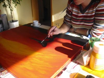 Durch den Duft der Acrylfarben angeregt lies ich meinen Inspirationen freien Lauf, so entstand mein erstes Bild